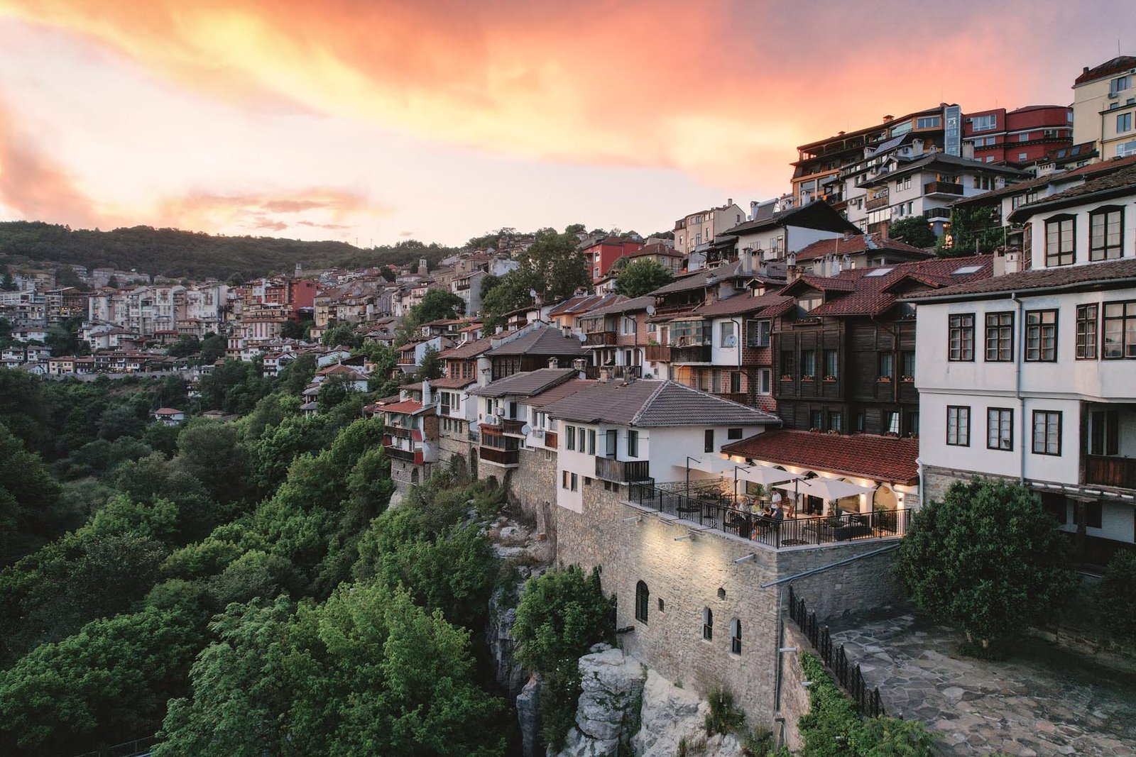 “And to tell you the truth, the whole of Bulgaria is so picturesque… Far ahead were other rocks, and on them perched the city – beautiful Tarnovo, every house in it bathed in color: covered with red baked tiles, walls painted in faded pinks and browns…